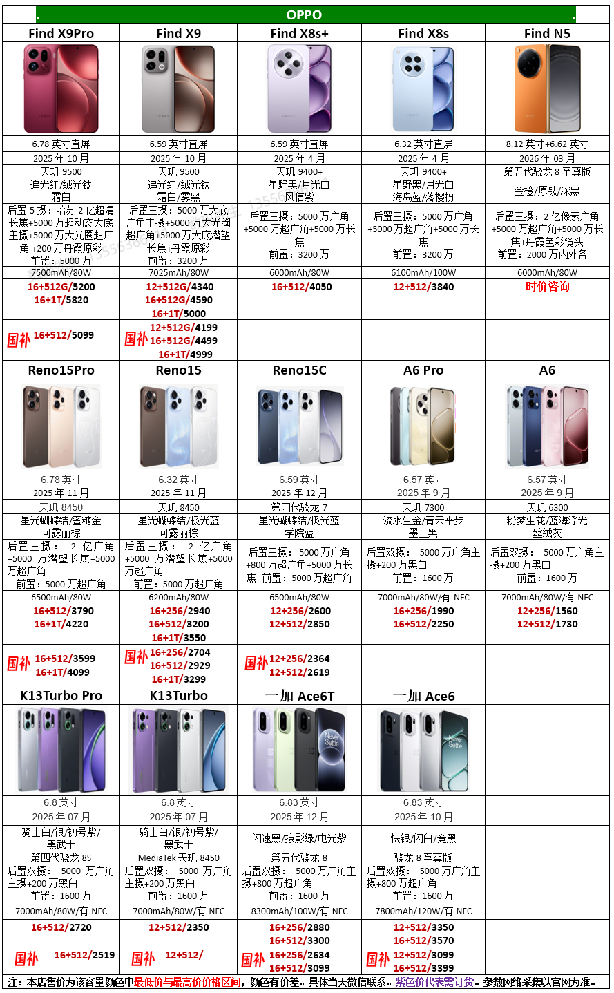 OPPO & VIVO报价3月