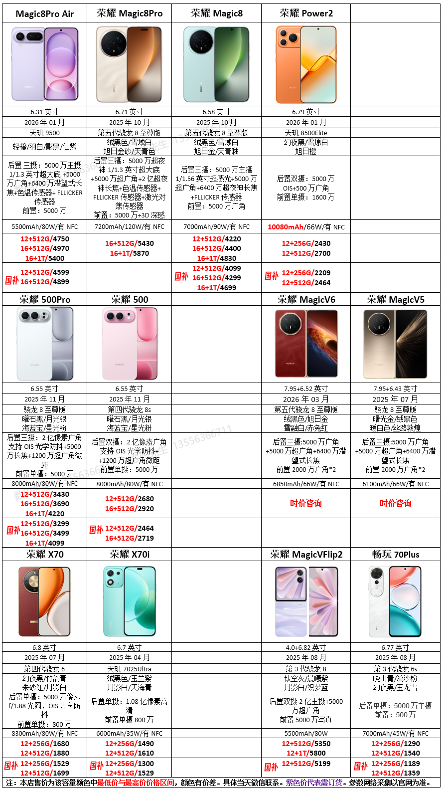 荣耀报价 3月11日