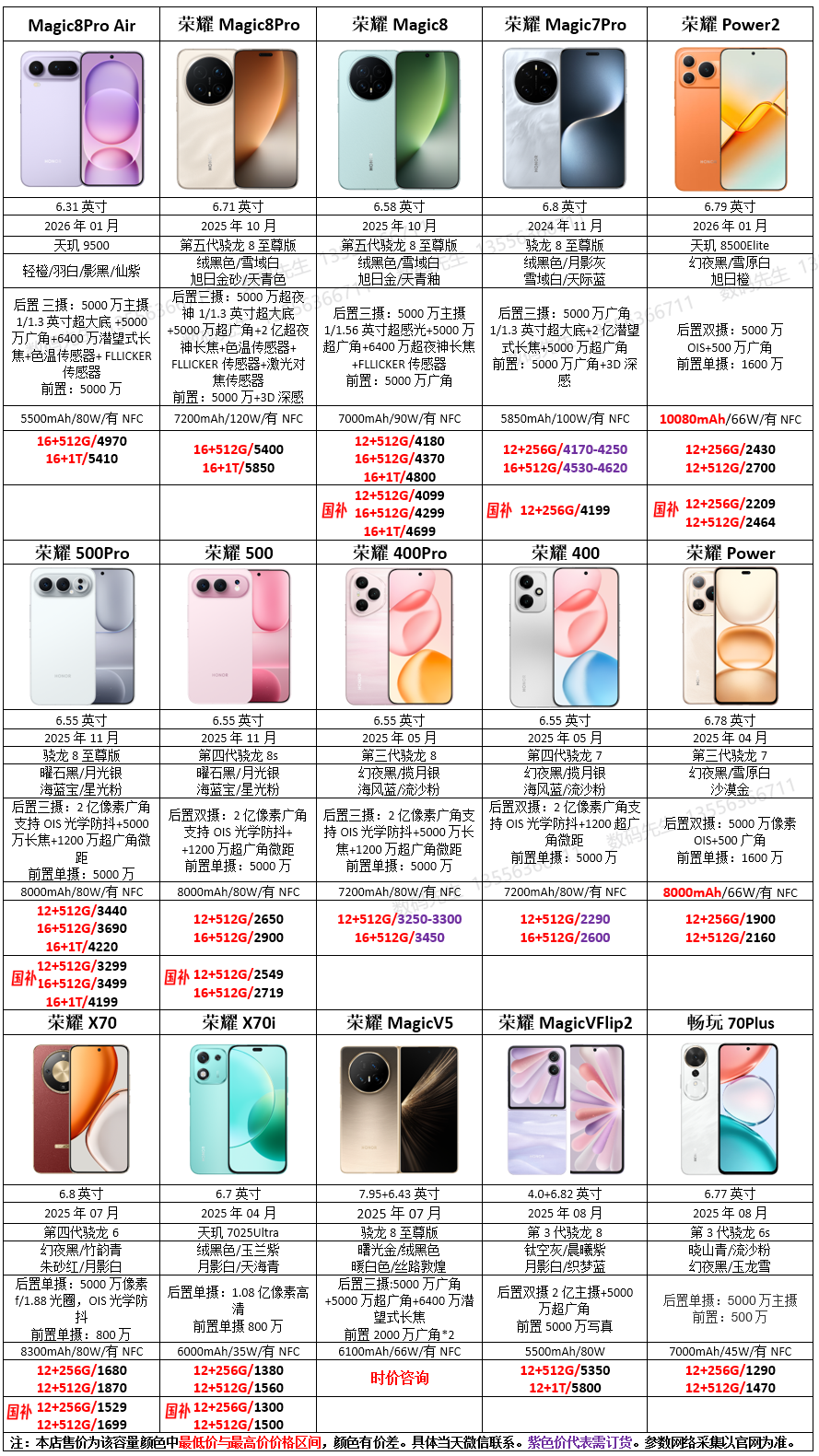 荣耀报价 3月2日