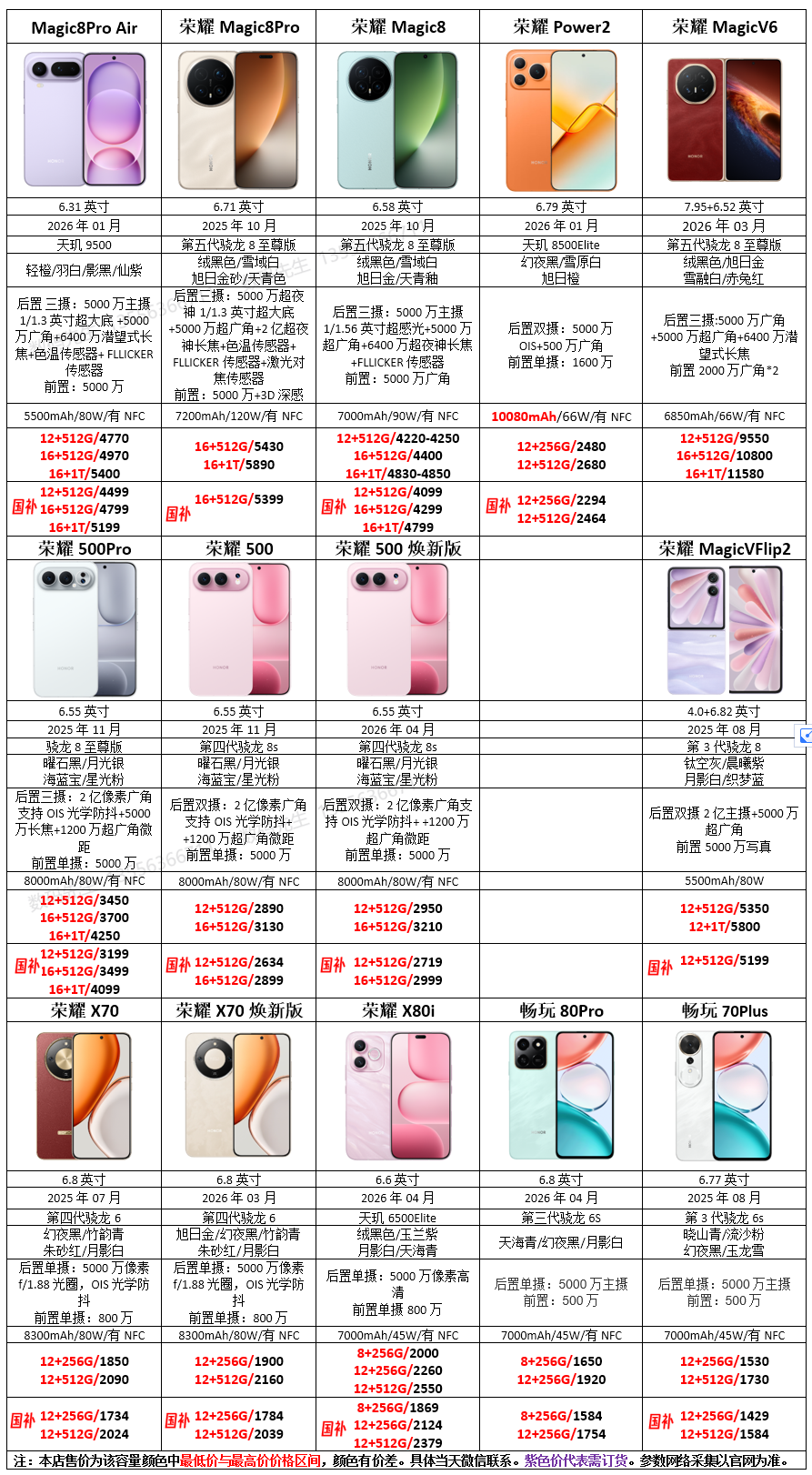 荣耀报价 4月21日